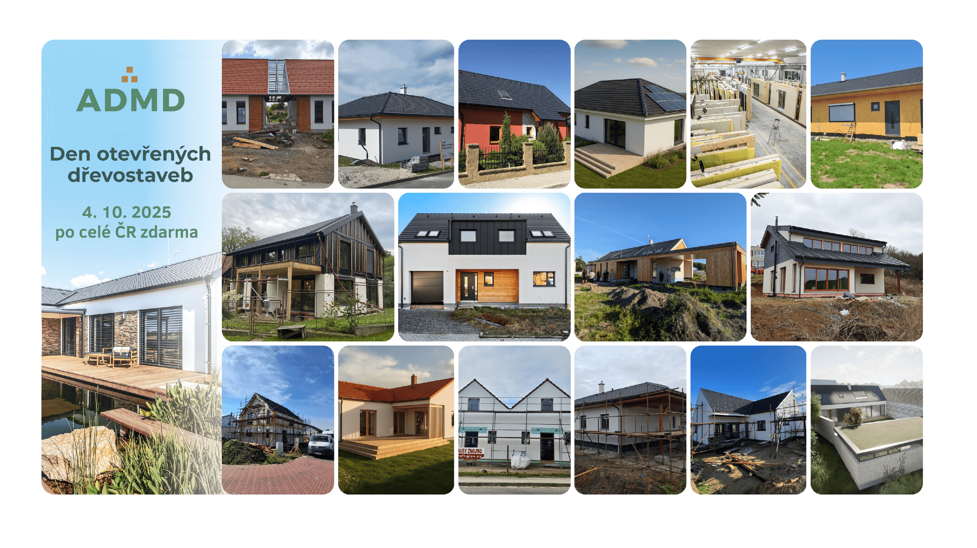 Během letošního, již 12. ročníku Dne otevřených dřevostaveb můžete navštívit bungalovy, patrové domy, rekreační objekty, řadové domy, katalogové i individuální stavby v nízkoenergetickém i pasivním standardu a rozestavěné i dokončené dřevostavby. K vidění budou také vzorové a referenční domy, výrobní závody či showroomy.